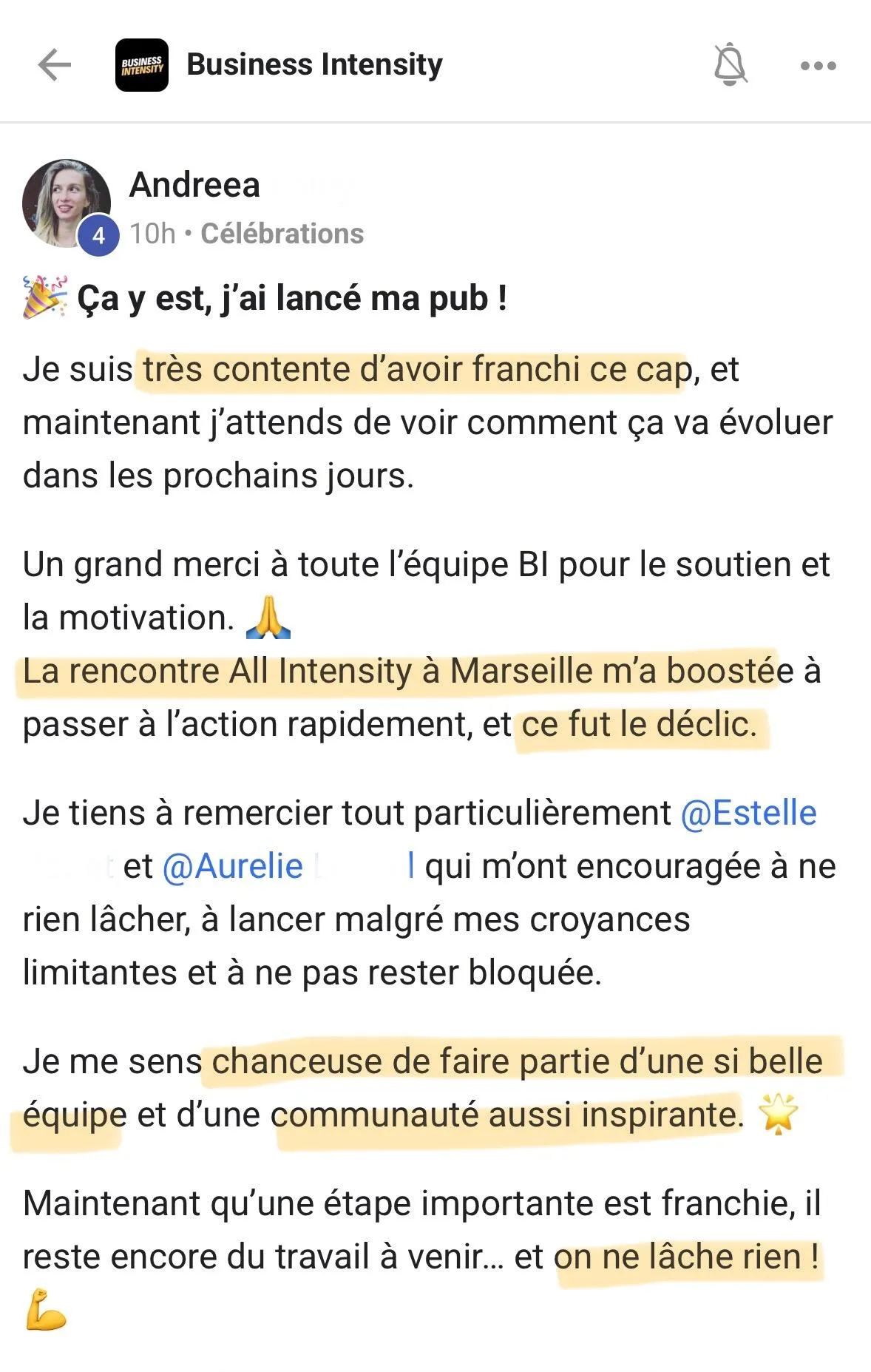 Tu peux nous écrire à [email protected] (ou directement sur Skool à Sandra ou Cindy si tu es membre de Business Intensity), on te répond rapidement.